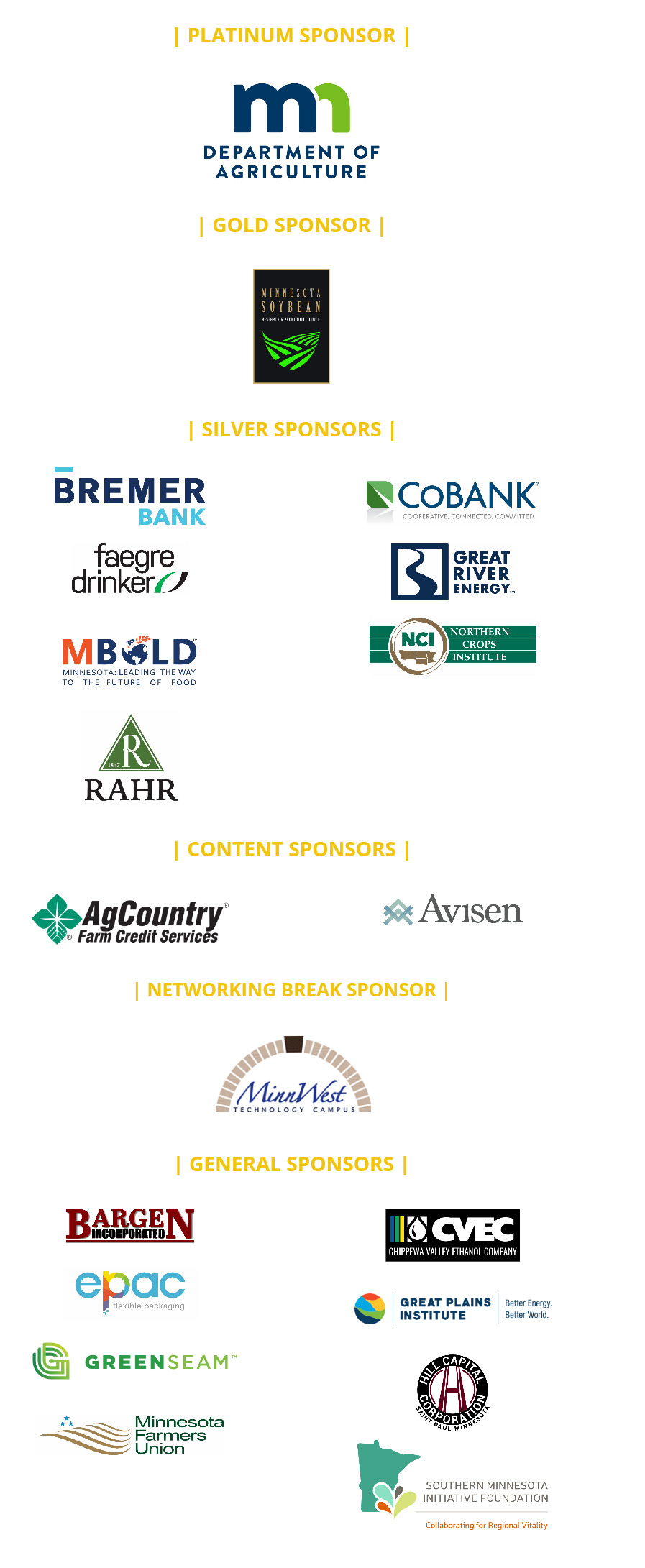 Join us in person or virtually as we convene some of the most knowledgeable voices on topics related to new uses innovation, including development, investment and support. The Forum will also include panel discussions on finance and investment capital, digital strategies, sustainable proteins, the next wave of renewables, Minnesota food and ag ecosystem supporters and spotlight entrepreneurs.