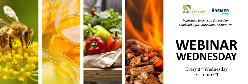 Join AURI Connects: Webinar Wednesday and event sponsors Bremer Bank and the Mainstreet Businesses Focused on Food and Agriculture (MBFFA) Initiative on Nov. 8, 2023, from 12:00-1:00 p.m. CT for the second session of this series.